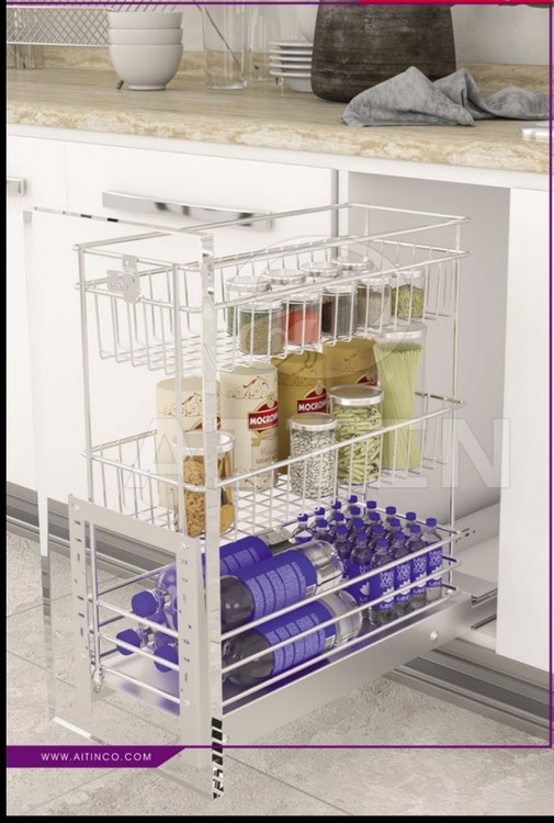 مینی سوپر کف ریل 3 طبقه از برند آیتین با بهترین کیفیت و بهترین متریال در سه سایز یونیت 25،20 و 15 در سالو یراق موجود میباشد.مخصوص جای ادویه و بطری میباشد.این محصول قابلیت نصب بر روی درب کابینت را دارد.و تحمل بار تا 30 کیلو را دارد.